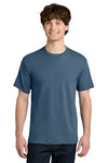 5.6-ounce, 100% carded ring spun cotton, 24 singles 90/10 carded ring spun cotton/polyester (Heather Gray) 1x1 rib knit neck Shoulder to shoulder taping Side seamed (4XL only) Tubular Tear-away label Regular fit